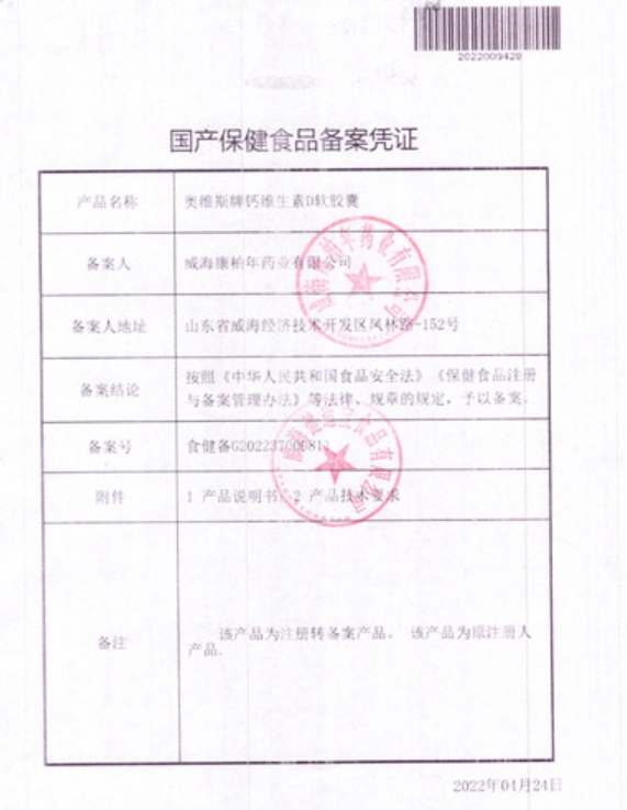 惍億康奧維斯牌鈣維生素D軟膠囊保健功能:補(bǔ)充鈣、維生素D;適宜人群:需要補(bǔ)充鈣、維生素D的成人、乳母;不適宜人群:17歲以下人群及孕婦。每日2次,每次1粒;食用方法:口服。