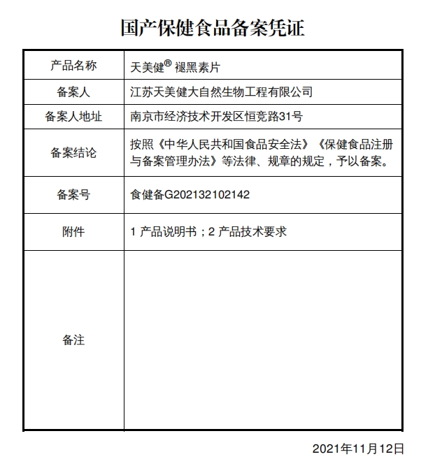 天美健褪黑素片保健功能:改善睡眠;適宜人群:成人;不適宜人群:少年兒童、孕婦、乳母。每日1次,每次1片,食用方法:口服。本品不能代替藥物。從事駕駛、機械作業(yè)或危險操作者,不要在操作前或操作中食用。自身免疫癥(類風(fēng)濕等)及甲亢患者慎用。