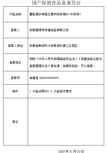 喜維康膳能牌多種維生素鈣鐵鋅硒片(牛奶味)保健功能:補(bǔ)充多種維生素鈣鐵鋅硒;適宜人群:需要補(bǔ)充多種維生素鈣鐵鋅硒的4-17歲人群及成人、孕婦、乳母;不適宜人群:3歲以下人群。每日1次,每次2片,食用方法:口服或咀嚼食用。