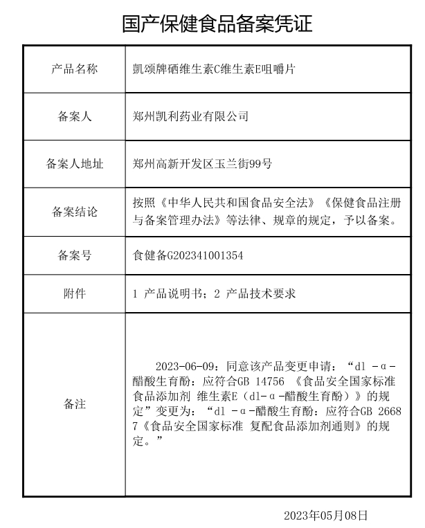凱頌牌硒維生素C維生素E咀嚼片保健功能:補(bǔ)充硒、維生素C、維生素E;適宜人群:需要補(bǔ)充硒、維生素C、維生素E的成人;不適宜人群:17歲以下人群及孕婦、乳母。每日1次,每次1片,食用方法:咀嚼。本品不能代替藥物。高硒地區(qū)人群不宜食用。