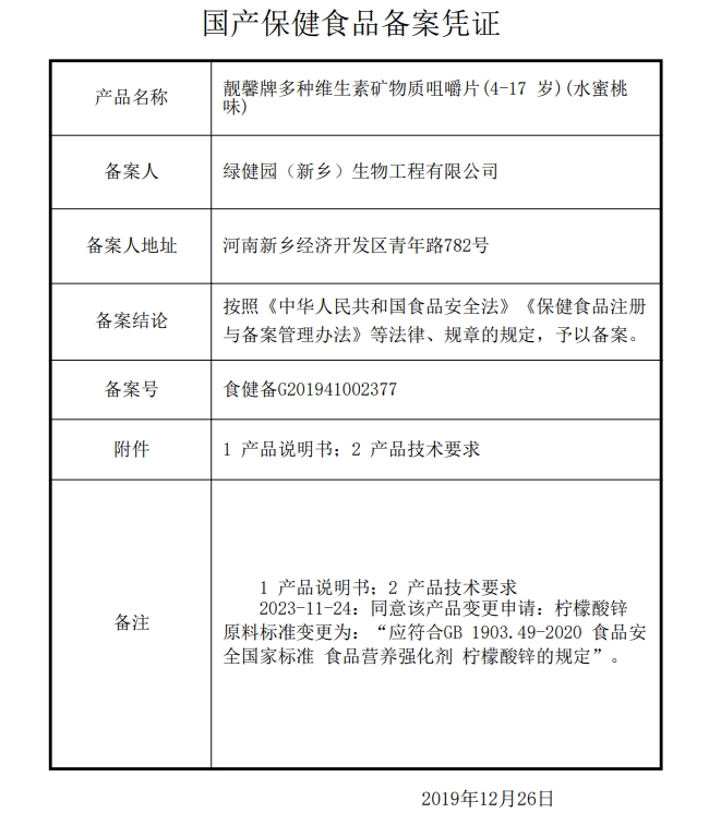 九芝堂靚馨牌多種維生素礦物質(zhì)咀嚼片(4-17歲)(水蜜桃味)保健功能:補充多種維生素礦物質(zhì);適宜人群:需要補充多種維生素礦物質(zhì)的4-17歲人群;不適宜人群:3歲以下人群及成人、孕婦、乳母。每日1次,每次2片,食用方法:咀嚼食用。本品不能代替藥物。