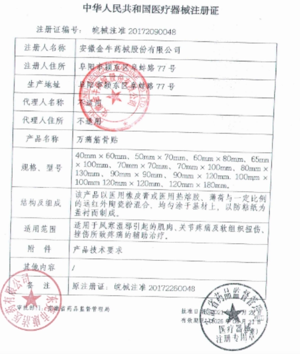 金邁通萬痛筋骨貼適用于風寒濕邪引起的肌肉、關節(jié)疼痛及軟組織扭傷、挫傷所致疼痛的輔助治療。使用時,先擦凈患處,拆開包裝,將本品貼于患處即可,24小時更換一次。孕婦、皮膚潰破、皮膚病患者和皮膚過敏者禁用,或在醫(yī)師指導下使用。