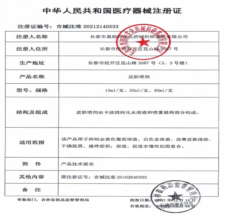 注冊(cè)證號(hào):吉械注準(zhǔn)20212140533批件 生產(chǎn)廠家:長(zhǎng)春市奧朗特生化藥械科研基地有限公司