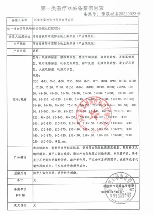蘭虎頸肩腰腿部穴位貼型砭貼由非織造布、背襯層及防粘層組成,背襯層由低敏性醫(yī)用壓敏膠、砭石粉末及輔料制成。貼于人體穴位處,通過外力僅起壓力刺激作用。非無菌產(chǎn)品。所含成分不發(fā)揮紅外輻射治療、磁療等作用。不應(yīng)含有發(fā)揮藥理學、免疫學或者代謝作用的成分。不應(yīng)包含附錄所列成分。