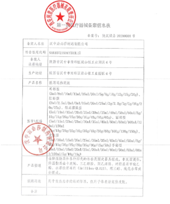 治必莎障翳視清醫(yī)用退熱凝膠由降溫物質(zhì)和各種形式的外套及固定器具組成。降溫物質(zhì)由卡波姆、三乙醇胺、聚乙烯醇、對羥基苯甲酸乙酯、水溶性清涼劑(Brillian-QLJ23)、丙三醇、純化水組成。不含有發(fā)揮藥理學、免疫學或者代謝作用的成分,不包含附錄所列成分。非無菌產(chǎn)品。