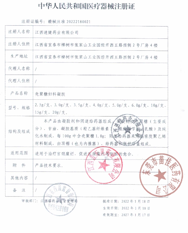 若姿美殼聚糖婦科凝膠適用于治療宮頸糜爛,促進宮頸糜爛等創(chuàng)面的愈合。本品由凝膠劑和陰道給藥器組成,凝膠劑由殼聚糖(主要成分)、甘油、凝膠基質(zhì)(羥乙基纖維素)、酸度調(diào)節(jié)劑(乳酸)及純化水制成,每100g中含殼聚糖1.0g;陰道給藥器采用高密度聚乙烯材料制成,由頂帽(也為內(nèi)推塞)、給藥器和保護后蓋組成。