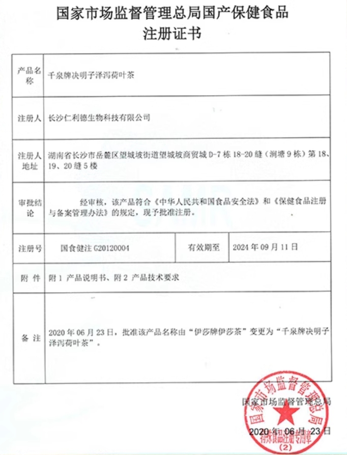 紐利安千泉牌決明子澤瀉荷葉茶保健功能:減肥;適宜人群:單純性肥胖的成人;不適宜人群:少年兒童、孕婦、乳母、慢性腹瀉者。每日3次,每次1袋,泡食。本品不能代替藥物。適宜人群外的人群不推薦食用本產(chǎn)品。苯丙酮尿癥(PKU)患者禁用;食用本品后如出現(xiàn)腹瀉,請立即停止食用。