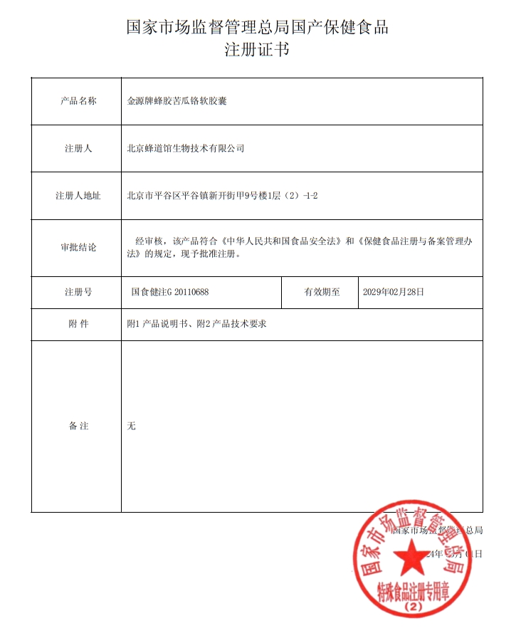 金源牌蜂膠苦瓜鉻軟膠囊保健功能:有助于維持血糖健康水平;適宜人群:血糖偏高者;不適宜人群:少年兒童、孕婦、乳母、蜂產(chǎn)品過敏者。每日2次,每次3粒,口服。本品不能代替藥物。適宜人群外的人群不推薦食用本產(chǎn)品。本品添加了營養(yǎng)素,與同類營養(yǎng)素同時(shí)食用不宜超過推薦量。