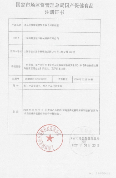 萌貝福尚品世佳牌氨糖軟骨素骨碎補(bǔ)膠囊保健功能:本品經(jīng)動(dòng)物實(shí)驗(yàn)評(píng)價(jià),具有增加骨密度的保健功能;適宜人群:中老年人;不適宜人群:少年兒童、孕婦、乳母。每日2次,每次3粒,口服。本品不能代替藥物。適宜人群外的人群不推薦食用本產(chǎn)品。