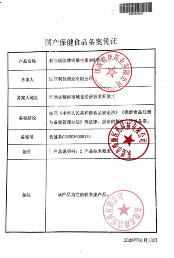 利佳康園牌鈣維生素D咀嚼片保健功能:補(bǔ)充鈣、維生素D;適宜人群:需要補(bǔ)充鈣、維生素D3的成人、孕婦、乳母;不適宜人群:17歲以下人群。每日1次,每次1片,食用方法:咀嚼食用。本品不能代替藥物。適宜人群外的人群不推薦食用本產(chǎn)品。苯丙酮尿癥患者慎用。