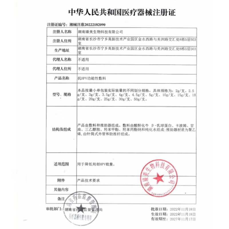 瑞醫(yī)臻抗HPV功能性敷料用于降低局部HPV載量。用法用量:1、打開初包裝,取出一次性推助器;2、先取下后蓋,再取下保護帽,將推助器插入陰道達陰道后穹窿深部宮頸處;3、用保護帽做助推桿,將凝膠推注至宮頸;4、一天一次,一次一支,10天為一個療程。