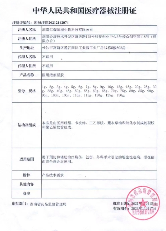 芭芙美醫(yī)用疤痕凝膠用于預(yù)防和輔助治療燒傷、創(chuàng)傷、外科手術(shù)引起的增生性疤痕,須在創(chuàng)面完全愈合后使用。確保疤痕部位清潔干燥,取本品適量,極薄地涂在疤痕上并使其干燥;每天1~2次或遵醫(yī)囑;兩個月為一個療程,疤痕嚴(yán)重者應(yīng)持續(xù)使用2-3個療程。