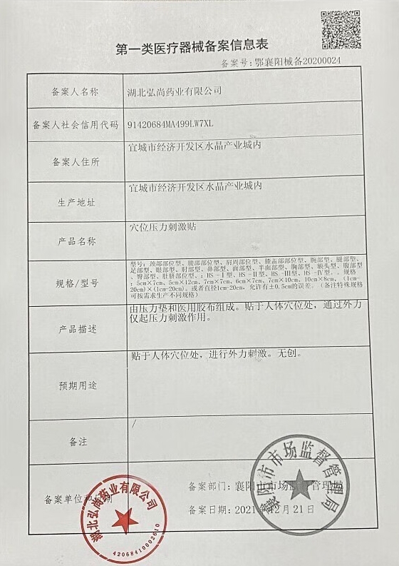 穴位壓力刺激貼(福記坊/三伏貼)貼于人體穴位處,進(jìn)行外力刺激。無創(chuàng)。本品針對穴位刺激作用對不適起輔助理療作用。使用前先清潔不適部位,揭去離型紙,將膏面貼于不適之處。本品外用,勿貼于破損皮膚、近眼睛部位及嘴部。