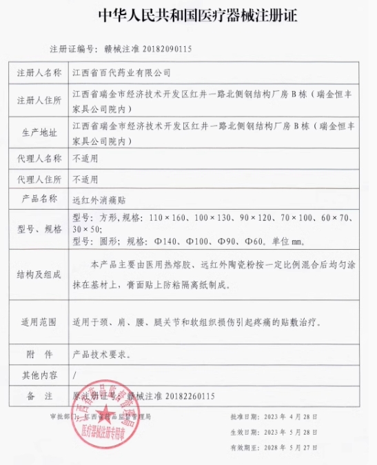 卓醫(yī)師萬痛筋骨貼(遠(yuǎn)紅外消痛貼)主要由醫(yī)用熱熔膠、遠(yuǎn)紅外陶瓷粉按一定比例混合后均勻涂抹在基材上,膏面貼上防粘隔離紙制成。適用于頸、肩、腰、腿關(guān)節(jié)和軟組織損傷引起疼痛的貼敷治療。