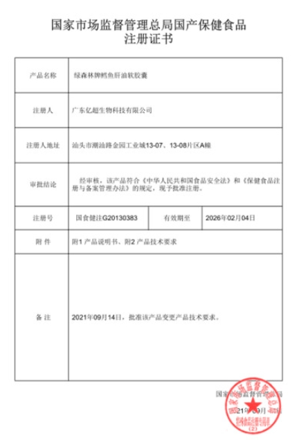 力兒綠森林牌鱈魚肝油軟膠囊保健功能:本品經(jīng)動(dòng)物實(shí)驗(yàn)評(píng)價(jià),具有增強(qiáng)免疫力的保健功能;適宜人群:免疫力低下者;不適宜人群:少年兒童、孕婦、乳母。每日1次,每次1粒;食用時(shí)將膠頭擰開或者用干凈的剪刀剪開,直接滴入口中,或直接口服。
