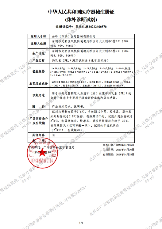 注冊證號:粵械注準20232400570批件 生產(chǎn)廠家:品峰(深圳)醫(yī)療器械有限公司