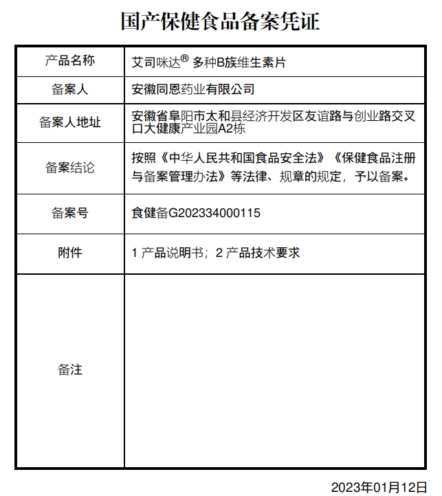 國(guó)藥藥材艾司咪達(dá)多種B族維生素片保健功能:補(bǔ)充多種B族維生素;適宜人群:需要補(bǔ)充多種B族維生素的成人;不適宜人群:17歲以下人群及孕婦、乳母。每日1次,每次1片,食用方法:口服。本品不能代替藥物。適宜人群外的人群不推薦食用本產(chǎn)品。
