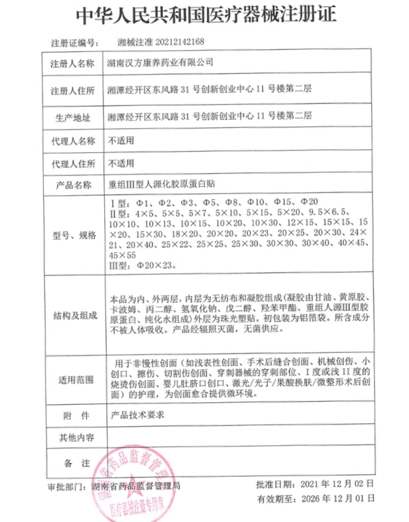 澀岡重組Ⅲ型人源化膠原蛋白貼用于非慢性創(chuàng)面(如淺表性創(chuàng)面、手術后縫合創(chuàng)面、機械創(chuàng)傷、小創(chuàng)口、擦傷、切割傷創(chuàng)面、穿刺器械的穿刺部位、I度或淺II度的燒燙傷創(chuàng)面、嬰兒肚臍口創(chuàng)口、激光/光子/果酸換膚/微整形術后創(chuàng)面)的護理,為創(chuàng)面愈合提供微環(huán)境。