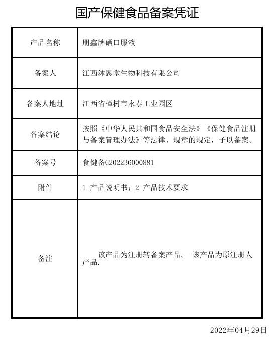 朋鑫牌硒口服液保健功能:補(bǔ)充硒;適宜人群:需要補(bǔ)充硒的成人;不適宜人群:17歲以下人群及孕婦、乳母。每日1次,每次1支;食用方法:口服。本品不能代替藥物。適宜人群外的人群不推薦食用本產(chǎn)品。不宜超過推薦量或與同類營養(yǎng)素同時(shí)食用。高硒地區(qū)人群不宜食用。