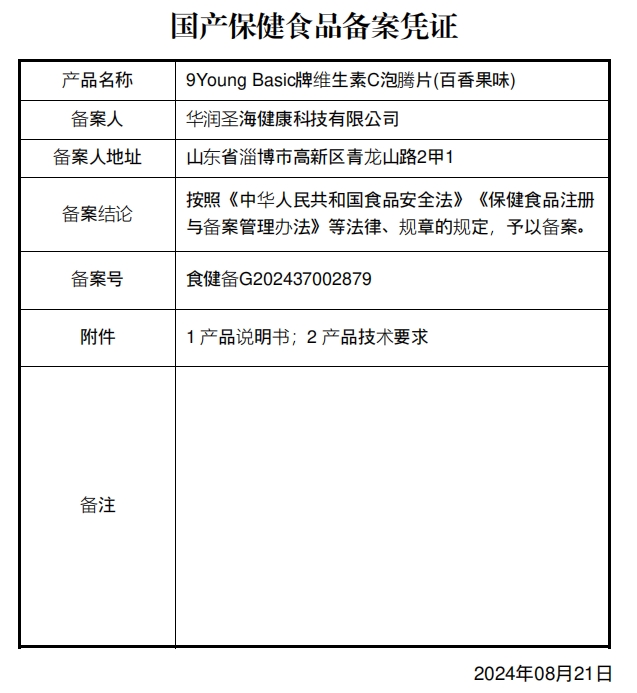 9YoungBasic牌維生素C泡騰片(百香果味)保健功能:補(bǔ)充維生素C;適宜人群:需要補(bǔ)充維生素C的成人;不適宜人群:17歲以下人群及孕婦、乳母。每日1次,每次1片;食用方法:將1片泡騰片投入180-200mL溫水中或涼水中,待泡騰溶解完全后飲用。本品不能代替藥物。不得咀嚼、含服或吞服。
