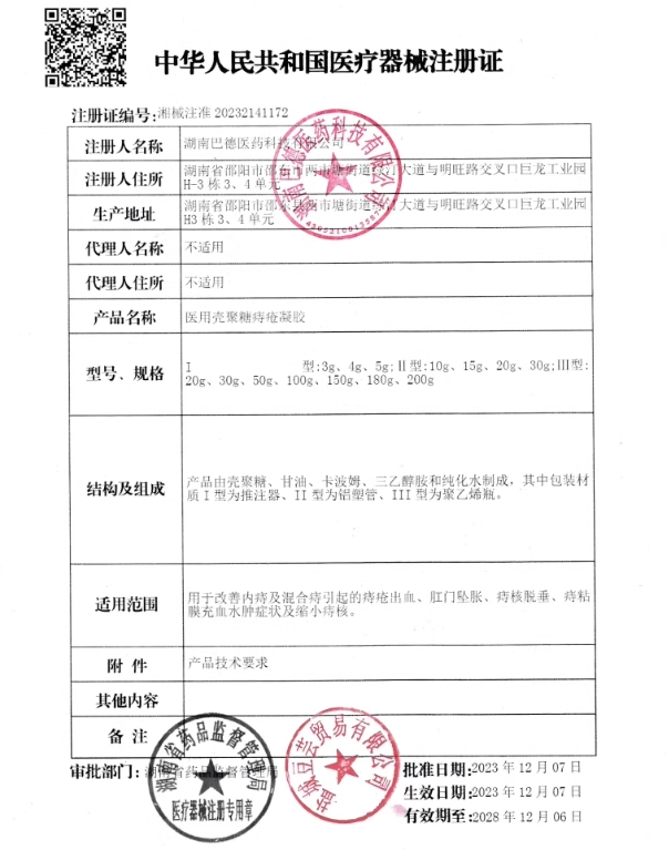 海氏海諾醫(yī)用殼聚糖痔瘡凝膠由殼聚糖、甘油、卡波姆、三乙醇胺和純化水制成,其中包裝材質I型為推注器、II型為鋁塑管、III型為聚乙烯瓶。用于改善內痔及混合痔引起的痔瘡出血、肛門墜脹、痔核脫垂、痔粘膜充血水腫癥狀及縮小痔核。