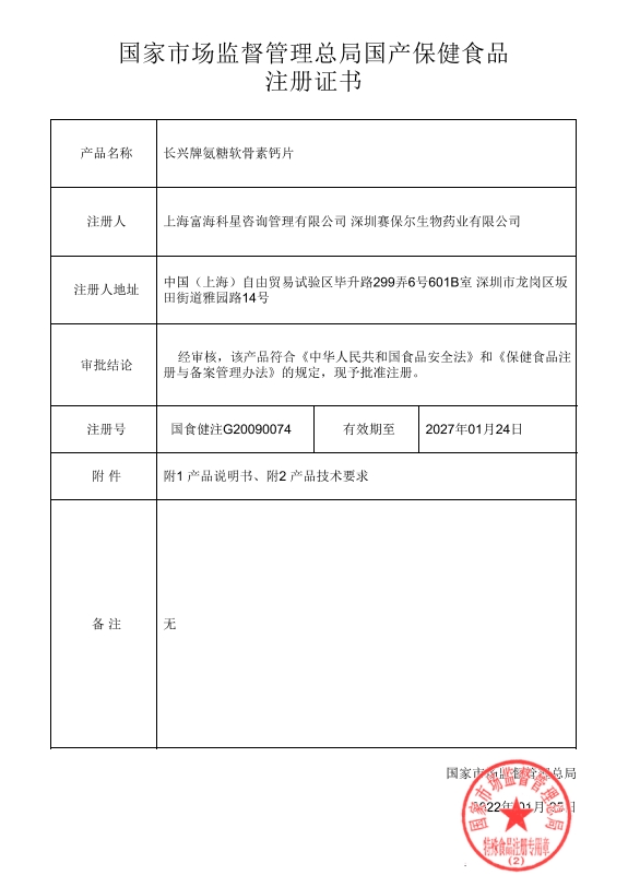 Dr.Rotus長興牌氨糖軟骨素鈣片保健功能:本品經(jīng)動物實(shí)驗(yàn)評價,具有增加骨密度的保健功能;適宜人群:中老年人;不適宜人群:少年兒童、孕婦、乳母。每日2次,每次2片,口服。本品不能代替藥物。對氨基葡萄糖過敏者慎用;有嚴(yán)重肝、腎功能不全者在食用本品后應(yīng)該定期檢查肝、腎功能。