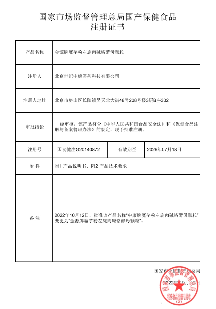 產(chǎn)品名稱:金源牌魔芋粉左旋肉堿鉻酵母顆粒 (葆來醫(yī)藥/??舌?