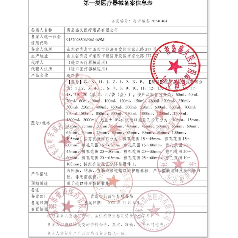 備贊造口袋(尿路一件式開口袋)為回腸、結腸、直腸或尿道造口的護理器械。產(chǎn)品接觸完好皮膚和腸內(nèi)腔。非無菌提供。用于造口排泄物的收集。