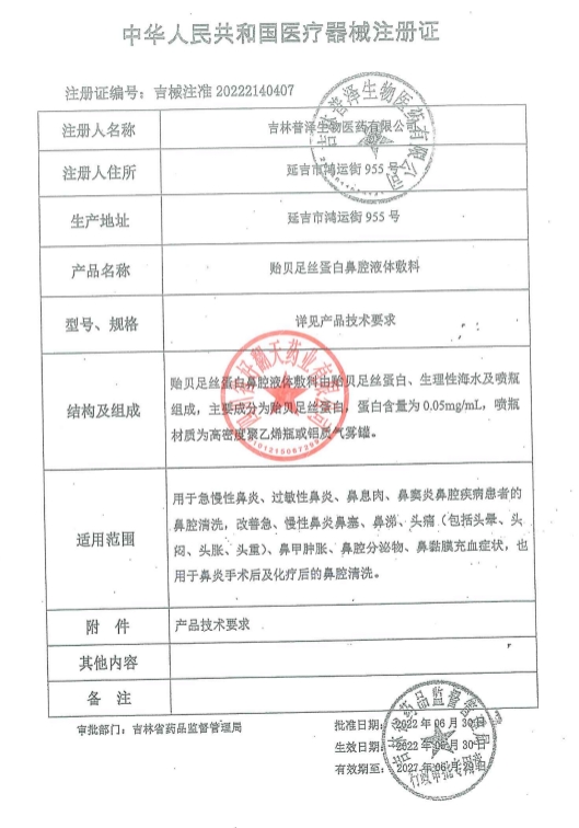 貽貝足絲蛋白鼻腔液體敷料(李芷墨/斯克液)用于急慢性鼻炎、過敏性鼻炎、鼻息肉、鼻竇炎鼻腔疾病患者的鼻腔清洗,改善急、慢性鼻炎鼻塞、鼻涕、頭痛(包括頭暈、頭悶、頭脹、頭重)、鼻甲腫脹、鼻腔分泌物、鼻黏膜充血癥狀,也用于鼻炎手術(shù)后及化療后的鼻腔清洗。
