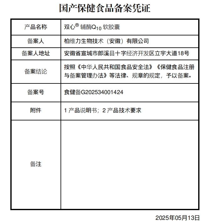 雙心輔酶Q10軟膠囊保健功能:有助于增強免疫力和有助于抗氧化;適宜人群:成人;不適宜人群:少年兒童、孕婦、乳母、過敏體質(zhì)人群。每日1次,每次1粒,食用方法:吞服。本品不能代替藥物;適宜人群外的人群不推薦食用本產(chǎn)品。服用治療藥物的人群食用本品時應向醫(yī)生咨詢。