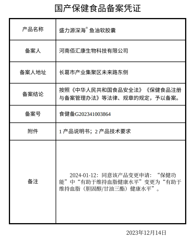 諾方洲盛力源深海魚油軟膠囊保健功能:有助于維持血脂健康?平;適宜人群:血脂偏高者;不適宜人群:少年?童、孕婦、乳?;出血傾向者和出血性疾病患者;肝功能不全者。每日2次,每次2粒;食用方法:口服。本品不能代替藥物。適宜人群外的人群不推薦食用本產(chǎn)品。對(duì)海產(chǎn)品過(guò)敏者不推薦食用。