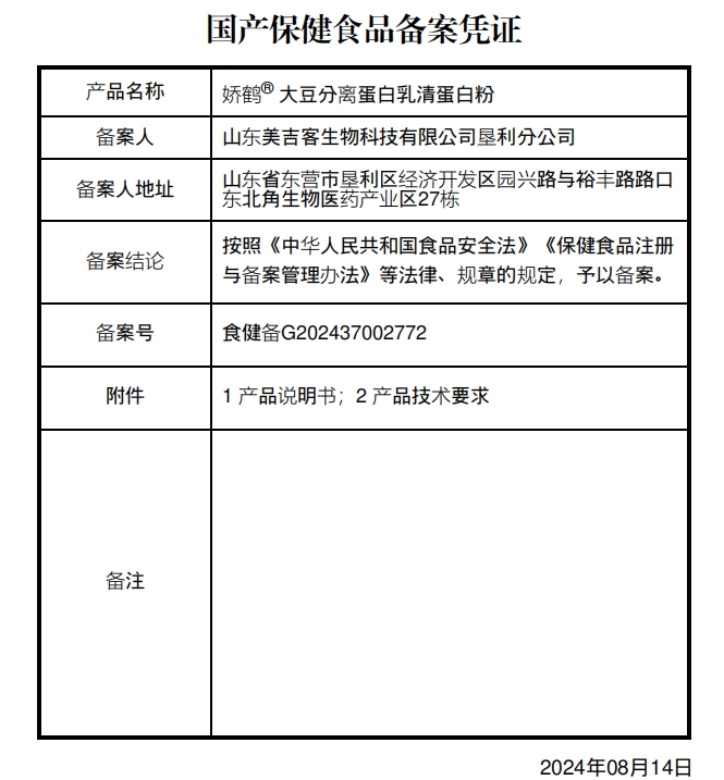 樂家遐齡嬌鶴大豆分離蛋白乳清蛋白粉保健功能:有助于增強免疫力;適宜人群:因蛋白質(zhì)攝入不足而致免疫低下的成人;不適宜人群:少年兒童。每日1次,每次1袋,食用方法:用溫水沖服。本品不能代替藥物。