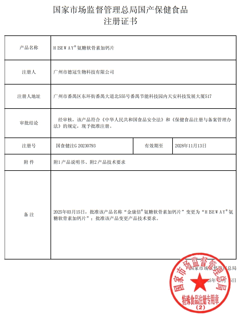 康恩貝金冠HISEWAY氨糖軟骨素加鈣片保健功能:經(jīng)動(dòng)物實(shí)驗(yàn)評(píng)價(jià),具有有助于改善骨密度的保健功能;適宜人群:中老年人;不適宜人群:少年兒童、孕婦、乳母。每日2次,每次2片,口服。本品不能代替藥物;適宜人群外的人群不推薦食用本產(chǎn)品。