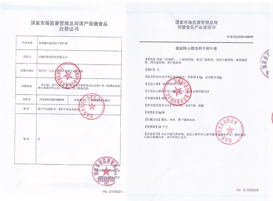 憶谷味碧迪牌山楂決明子荷葉茶保健功能:減肥;適宜人群:單純性肥胖人群;不適宜人群:少年兒童、孕婦、乳母及慢性腹瀉者。每日1次,每次1袋,泡服。本品不能代替藥物;適宜人群外的人群不推薦食用本產品;使用本品后如出現(xiàn)腹瀉者,請立即停止食用。