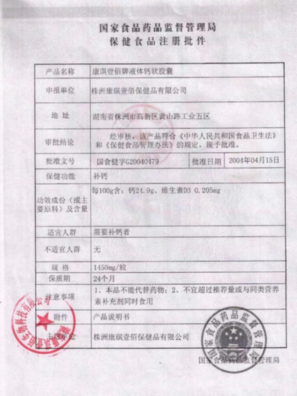 鑫康康琪壹佰牌液體鈣軟膠囊保健功能:補(bǔ)鈣;適宜人群:需要補(bǔ)鈣者;不適宜人群:無。每日1粒。本品不能代替藥物。不宜超過推薦量或與同類營(yíng)養(yǎng)素補(bǔ)充劑同時(shí)食用。