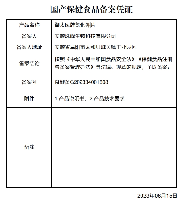 肽歲1號御太醫(yī)牌氯化鉀片保健功能:補(bǔ)充鉀;適宜人群:需要補(bǔ)充鉀的4-17歲人群及成人、孕婦、乳母;不適宜人群:3歲以下人群。每日1次,每次2片,食用方法:口服。本品不能代替藥物。適宜人群外的人群不推薦食用本產(chǎn)品。不宜超過推薦量或與同類營養(yǎng)素同時食用。