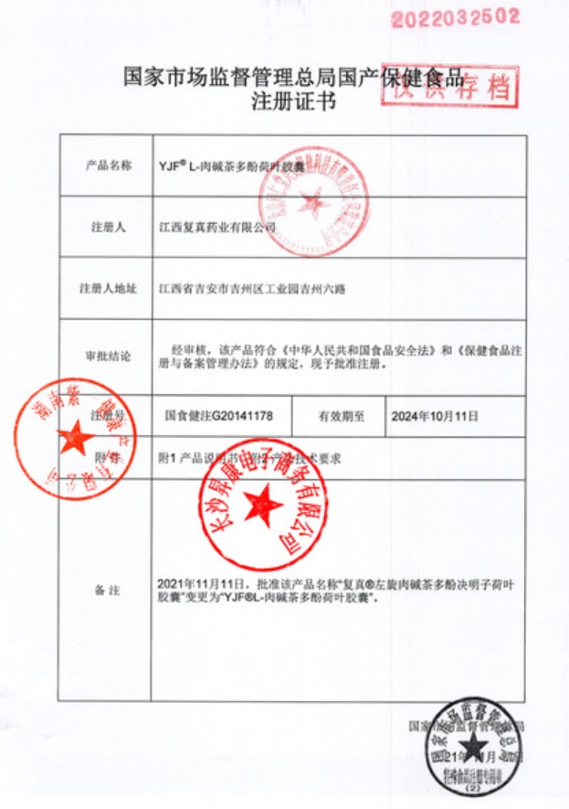 暢千嬌YJF L-肉堿茶多酚荷葉膠囊保健功能:有助于控制體內(nèi)脂肪;適宜人群:單純性肥胖人群;不適宜人群:少年兒童、孕婦、乳母、慢性腹瀉者。每日2次,每次2粒,口服。本品不能代替藥物;適宜人群外的人群不推薦食用;食用本品后如出現(xiàn)腹瀉,請立即停止食用。