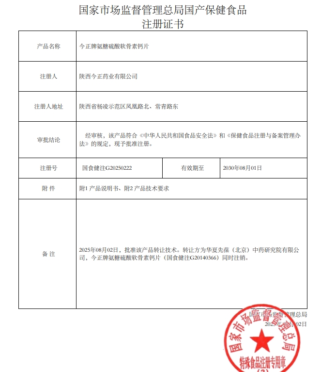 今正牌氨糖硫酸軟骨素鈣片保健功能:本品經動物實驗評價,具有有助于改善骨密度的保健功能;適宜人群:中老年人;不適宜人群:少年兒童、孕婦、乳母。每日2次,每次2片,口服。本品不能代替藥物;適宜人群外的人群不推薦食用本產品;本品添加了營養(yǎng)素,與同類營養(yǎng)素同時食用不宜超過推薦量。