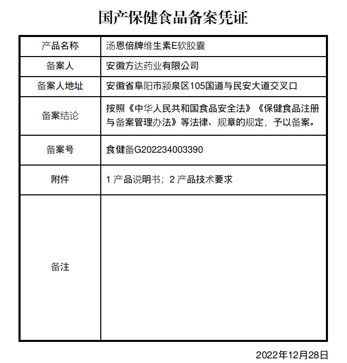 湯恩倍牌維生素E軟膠囊保健功能:補(bǔ)充維生素E;適宜人群:需要補(bǔ)充維生素E的成人;不適宜人群:17歲以下人群及孕婦、乳母。每日1次,每次1粒;食用方法:口服。本品不能代替藥物。適宜人群外的人群不推薦食用。不宜超過(guò)推薦量或與同類(lèi)營(yíng)養(yǎng)素同時(shí)食用。