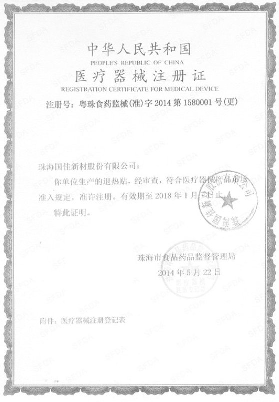注冊(cè)號(hào) 粵珠食藥監(jiān)械(準(zhǔn))字2010第1640002號(hào)